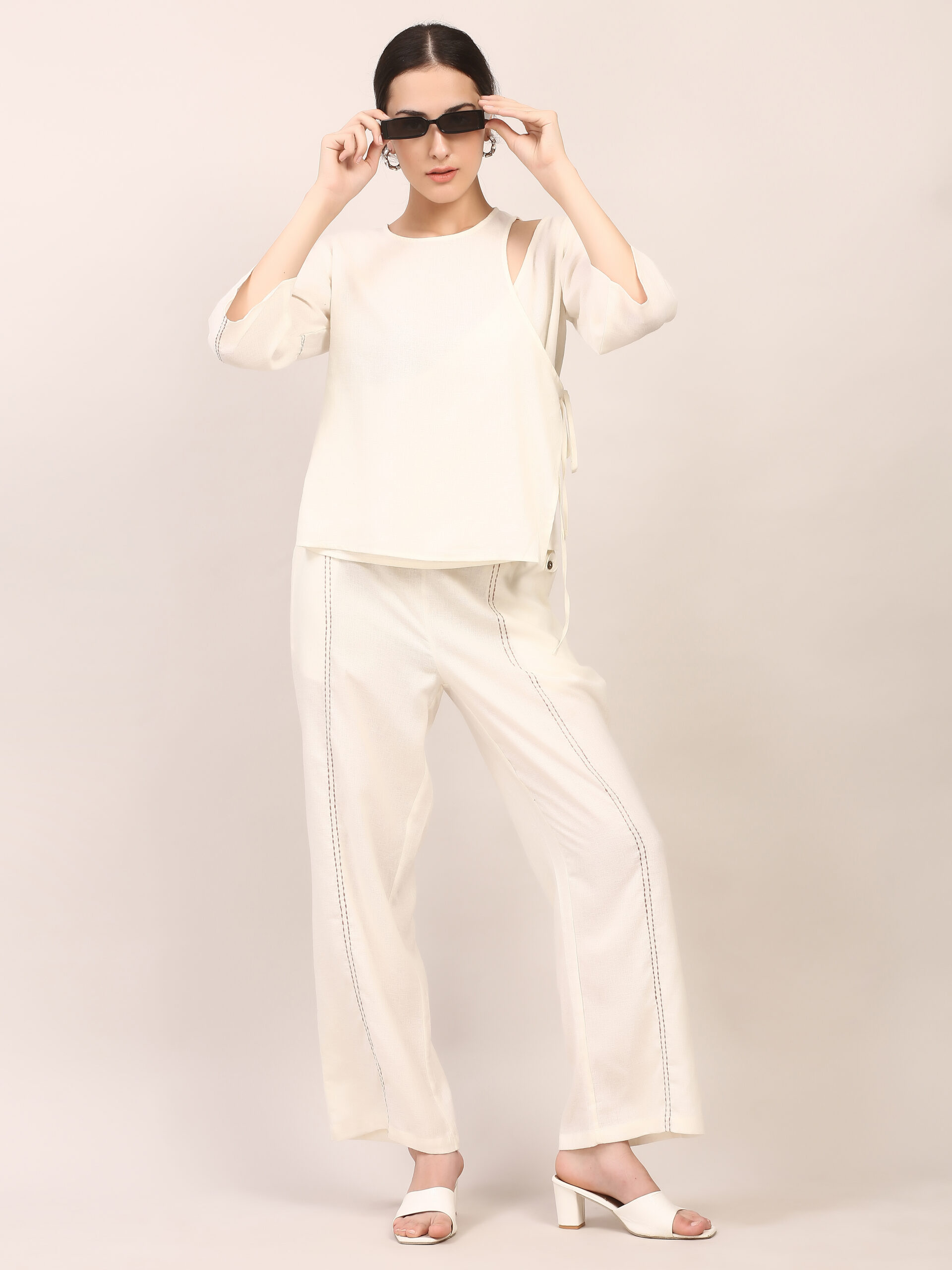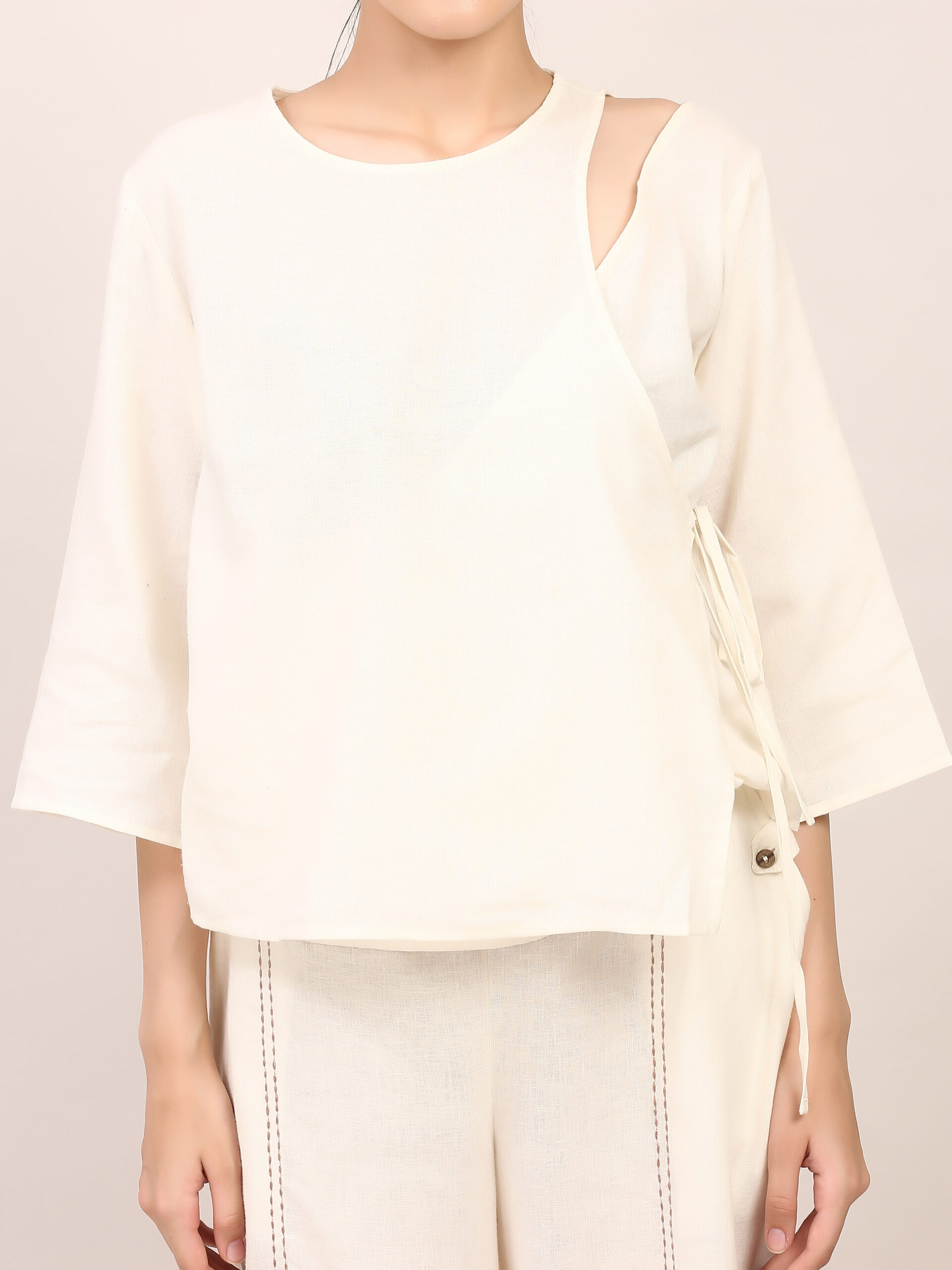 Inspired by the classic Indian silhouette, the Angrakha Top blends tradition with modern function. Made from viscose linen, it is naturally breathable and lightweight, keeping you cool and comfortable as you move. The contrast embroidery adds a refined touch, while the fluid silhouette ensures complete ease for all yoga movements. A piece that lets you feel closer to nature—on and off the mat.