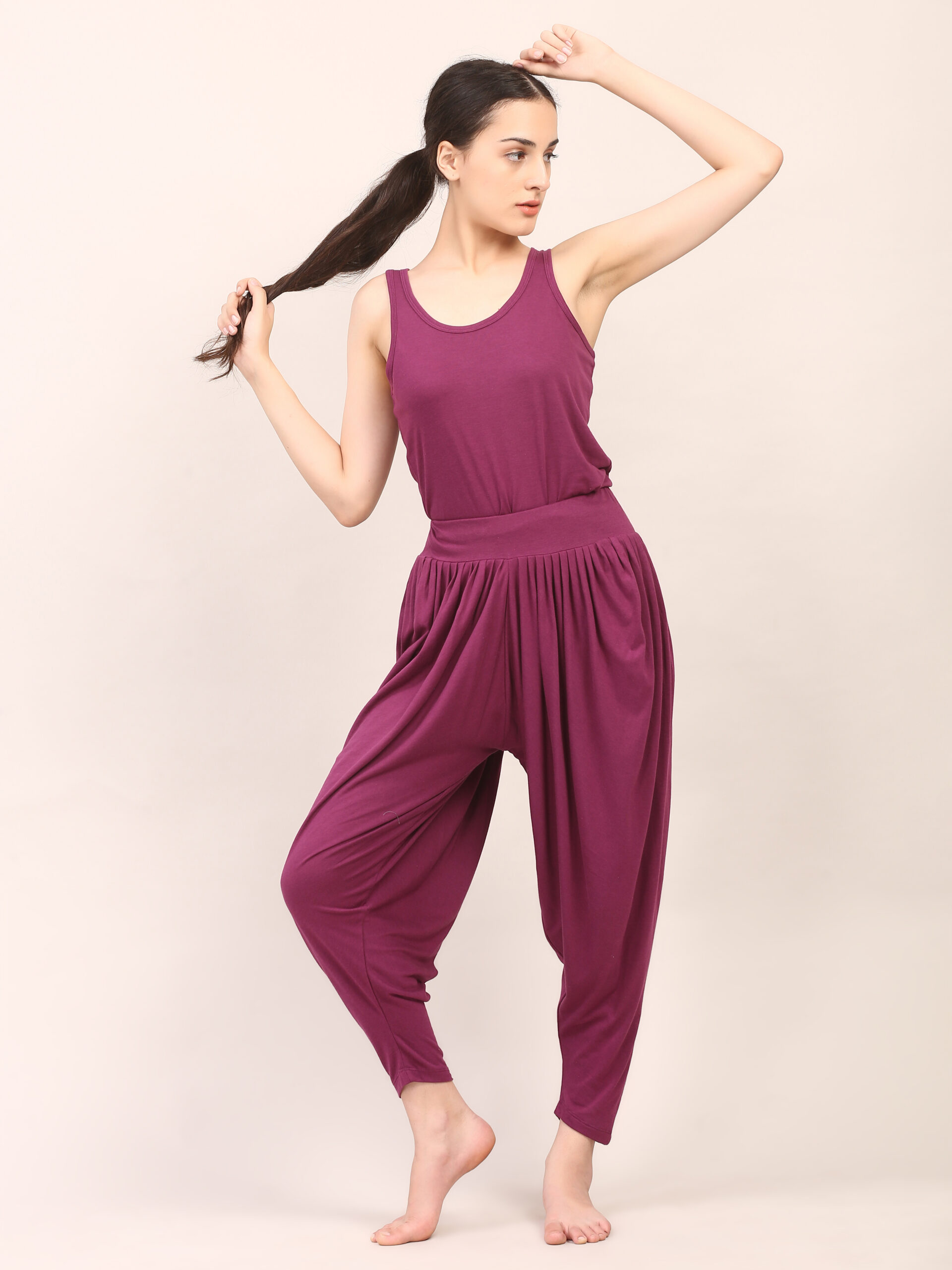 Move with complete freedom in the Gwen Yoga Pants, crafted from Modal Cotton fiber. Designed in a relaxed harem silhouette, they offer generous fabric and natural stretch, giving you more space than you’ll ever need for your yoga practice. The soft, breathable bamboo ensures comfort on the skin, while the convenient waistband provides a secure yet flexible fit. A perfect balance of ease, flow, and function.