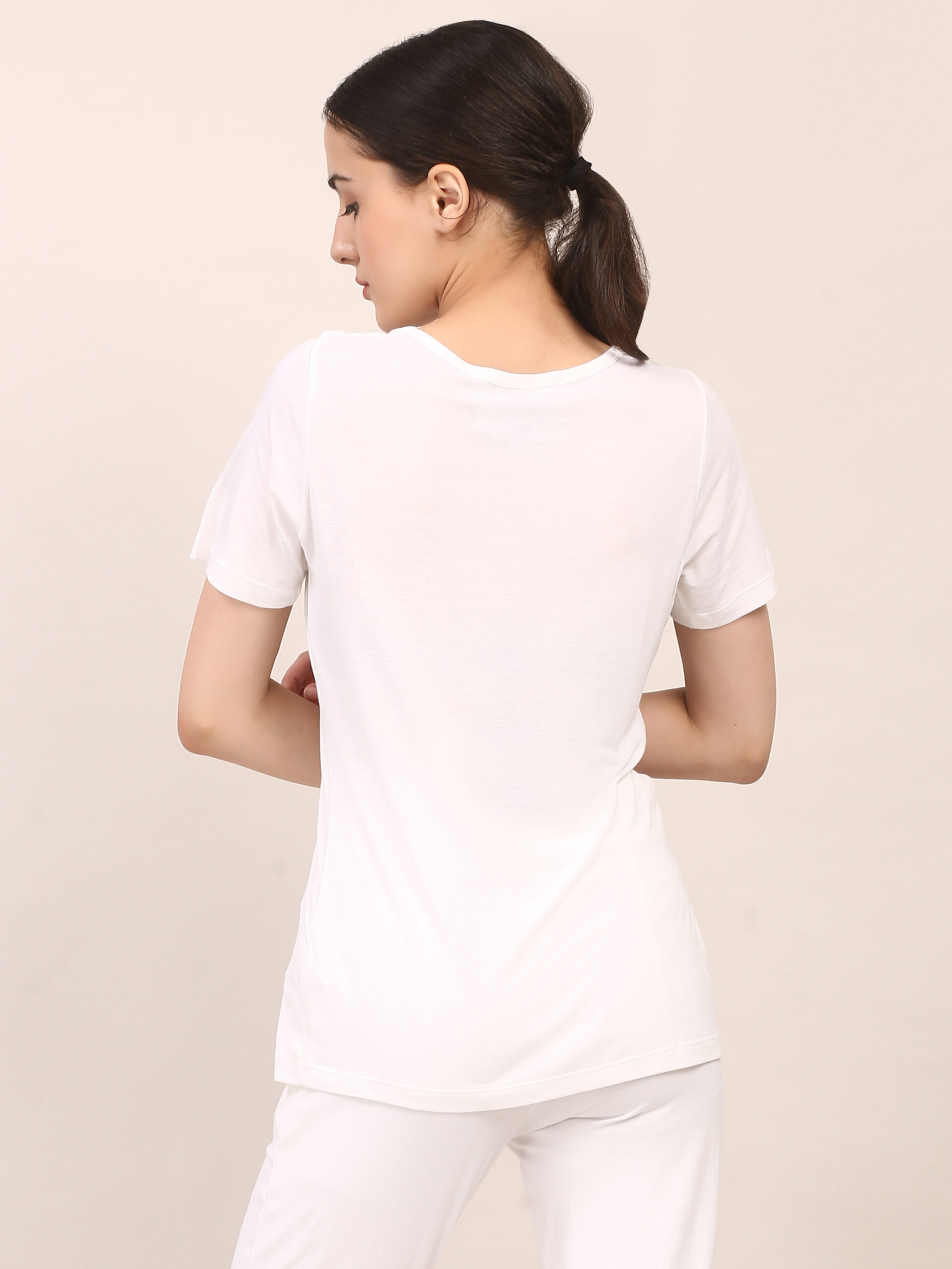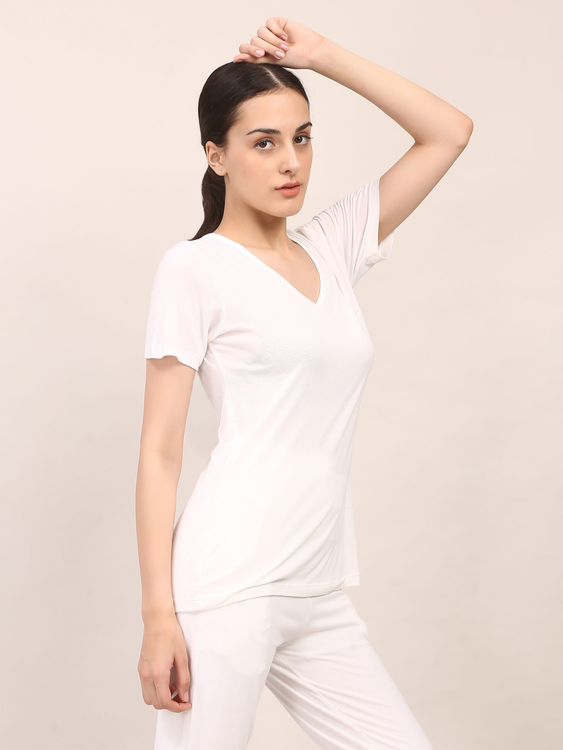 Elevate your everyday essentials with the Nyla Top, crafted from 100% bamboo fiber. Naturally breathable and hypoallergenic, bamboo keeps your skin cool, dry, and comfortable through every move. The V-neckline adds a flattering touch, while the lightweight fabric and easy fit make it ideal for yoga, high-intensity workouts, or relaxed daily wear. A perfect balance of performance and elegance.
